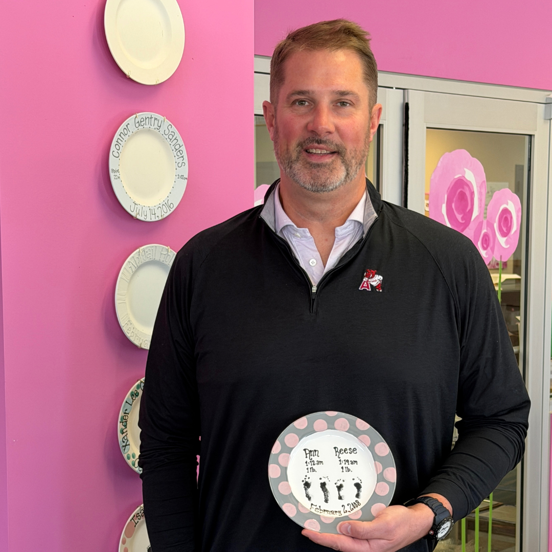 Jona is one of our artists who volunteers her time and creative talents by painting plates for Mamie’s. Jona has a miracle grandson who was born at 29 weeks - spent 40 days in the NICU and is now a thriving toddler. Jona wanted to find a way to give back in his honor. Jona also works as an RN in the renal department at Arkansas Children’s.